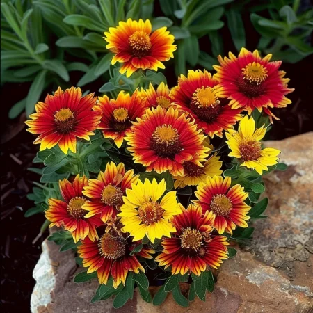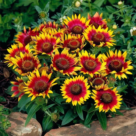 Kompaktna višegodišnja biljka s jarkim crveno-žutim cvatovima koji obilno cvjetaju od početka ljeta do jeseni.