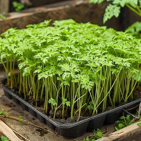 Berba se obavlja kada biljke dosegnu visinu od oko 5–8 cm i razviju prve prave listove.